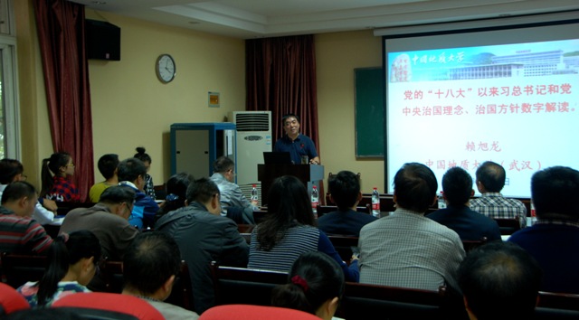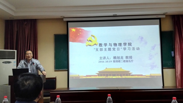 学校党委常委、副校长赖旭龙教授作题为“党的 ‘十八大’以来习总书记和党中央治国理念、治国方针数字解读”的报告。赖校长从“两学一做”的背景及意义出发,以八个数字为主线,用数字化的方式系统解读了党的“十八大”以来习总书记关于治国理政方方面面的内容。赖校长最后强调学院师生党员要加强党性修养,发扬长征精神,按照“四讲四有”的要求做合格党员,充分发挥先锋模范作用,为全面提升十大买球官方网站办学实力和办学水平而努力奋斗。