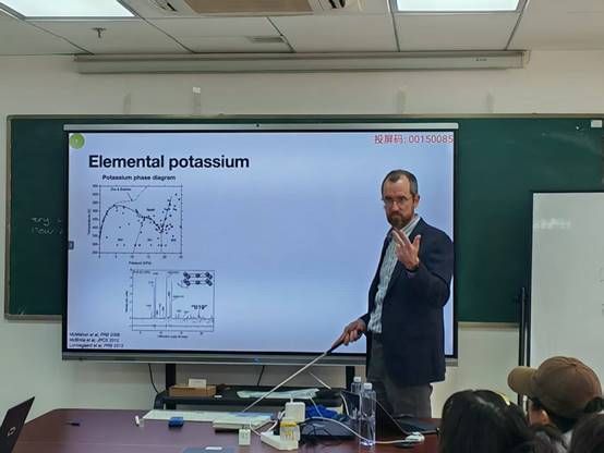 2025年12月2日下午, Andreas Hermann教授在东教楼1104学术报告厅为十大买球官方网站部分物理学专业和材料与化工专业的博士生、硕士生和青年教师作了题为“From DFT to thermodynamic modelling”的学术报告。报告以近期关于“同时具备固体与液体特征的新物态”的报道为切入点,系统阐述他们研究团队在高压物理与计算材料学领域的系列工作。Andreas Hermann教授从钾的高压相图与非共格宿主—客体结构详细阐述了“链熔融”作为一种热力学中间态的证据与机制,提出了碱金属高压相可作为部分电子化合物的观点,展示了如何利用机器学习分子动力学模拟预测相变、熔化线极值及热力学性质,介绍了基于Bragg-Williams模型的两态热力学理论,解释了金属熔化线中的临界行为。此外,Andreas Hermann教授还介绍了第一性原理计算在高压冰(VII–VIII–X)相变研究中的应用,探讨了隐藏临界点与相图拓扑等前沿问题,展望了机器学习在预测复杂材料行为方面的潜力。报告期间,Andreas Hermann教授与在场师生就高压相变机理、机器学习势函数开发等相关问题展开了深入讨论并细致回答了师生提问。