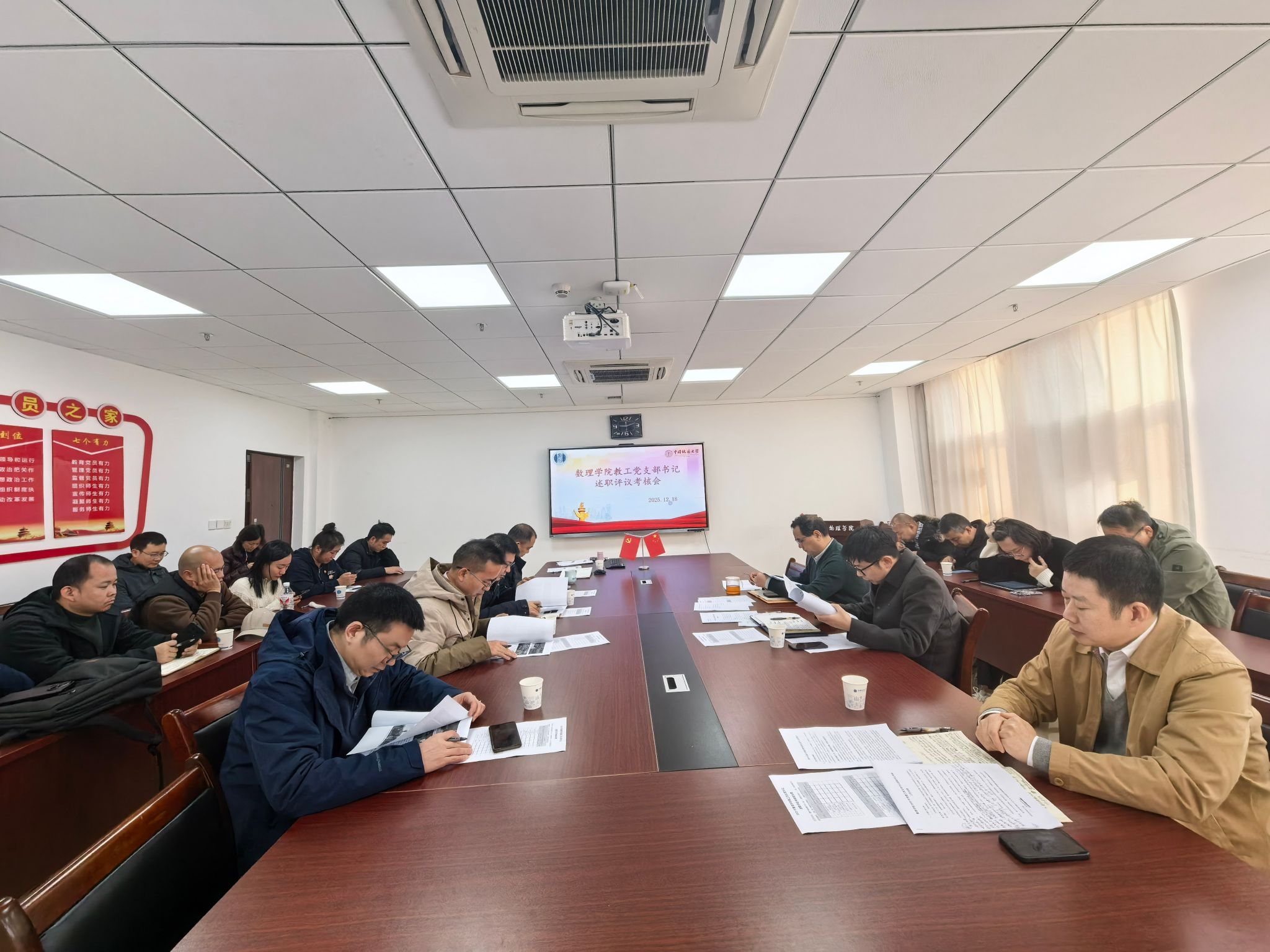 12月18日,十大买球官方网站党委在东区教学综合楼A1505会议室召开2025年度教工党支部书记述职评议考核大会。院党委书记张基得主持会议,学院领导班子成员、教工党支部书记、教师代表等参加会议。