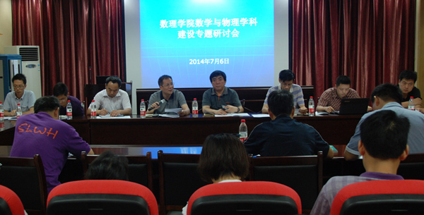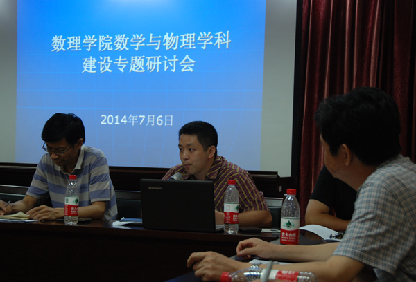 接着,副院长黄刚和张光勇分别汇报了数学和物理两个学科建设情况,从师资队伍、科研水平、人才培养质量等方面分析了在学科评估中存在的问题,提出了学科建设目标和发展思路,并从学科师资建设、科技创新、平台建设、提高人才培养质量等方面提出了具体的学科建设措施。