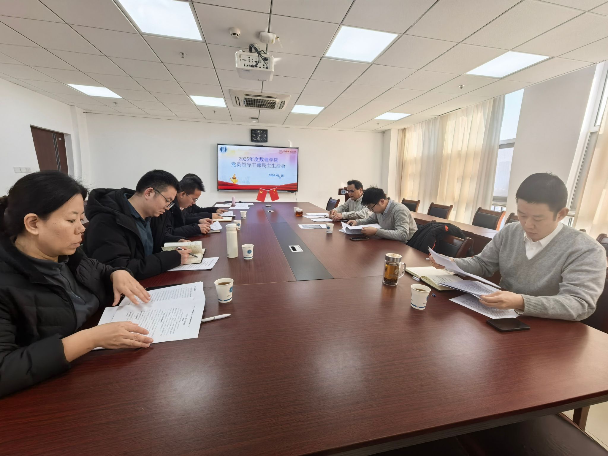 1月15日下午,十大买球官方网站2025年度党员领导干部民主生活会在东区教学综合楼A1505召开。学院领导班子全体成员参加会议,院工会主席列席会议。会议由院党委书记张基得主持。