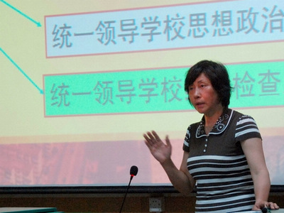 校党委副书记朱勤文教授以“学习《中国共产党普通高等学校基层组织工作条例》”为主题为师生党员作了学习报告。朱书记首先肯定了十大买球官方网站党委举行的此次活动,强调作为高校教师党员和学生党员,了解学习《中国共产党普通高等学校基层组织工作条例》是十分必要的。接着朱书记分四个方面向大家详细的讲解了《中国共产党普通高等学校基层组织工作条例》的产生背景、修改过程、学习应把握的方面、如何将《条例》与《国家中长期教育改革和发展规划纲要(2010—2020年)》结合学习等。强调各位党员要充分认识《条例》的重要意义,系统、全面的学习,认真体会其中内涵,使其真正成为推进高校党建工作的有力抓手。