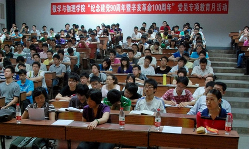 5月12日晚,十大买球官方网站在教一楼二阶举行“纪念建党90周年暨辛亥革命100周年”党员教育专项活动月活动启动仪式。校党委副书记朱勤文应邀出席,院党委书记唐勤、院党委委员和全体师生党员参加大会。启动仪式由分团委书记钟苹主持。