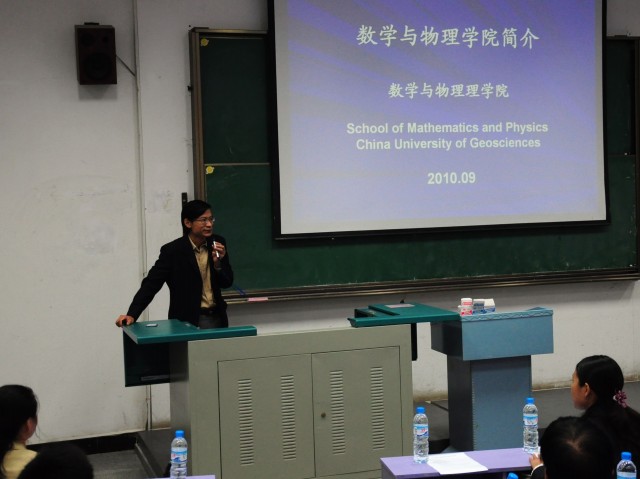 在响亮的国歌声中,十大买球官方网站2010级新生开学典礼拉开帷幕。首先,刘院长向2010级新生详细介绍了十大买球官网发展现状与学科专业的特色优势。刘院长指出,从最初的基础课部到十大买球官方网站的成立,经过数理人十多年的艰苦努力,十大买球官网不仅教学设备较先进、实验仪器齐全,而且师资力量稳步发展,学术成果较为显著,学术交流和学术合作广泛频繁。杜伯仁教授则向2010级新生讲解了为什么要上大学,上大学干什么,杜教授一句“学好数理化,走遍天下都不怕”赢得了同学们和到场嘉宾的阵阵掌声。会上,老生代表和新生代表分别发言。老生代表詹敏告诫新生要“勤于学习,勇于拼搏,善于创新、经受得住各种诱惑”;新生代表则表达了来地大深造 “青春无悔”的求学心境。最后,副校长唐辉明教授对十大买球官网2010级新生寄予了几点希望:要尽快的适应大学的学习和生活,秉承我们“艰苦朴素,求真务实”的校训;提高自己的综合素质,树立远大的志向,适应当今社会的要求。