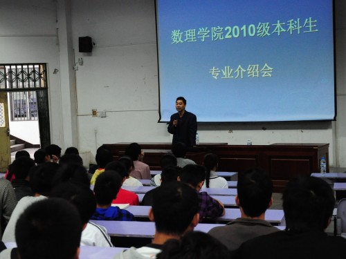 9月26号上午9:00,十大买球官方网站在教三楼109、311和数理楼二楼会议室分别举行2010级新生各专业介绍会。罗文强教授、罗中杰教授和杨瑞琰教授分别为十大买球官网2010级数学与应用数学专业、物理学专业和信息与计算科学专业讲解介绍。