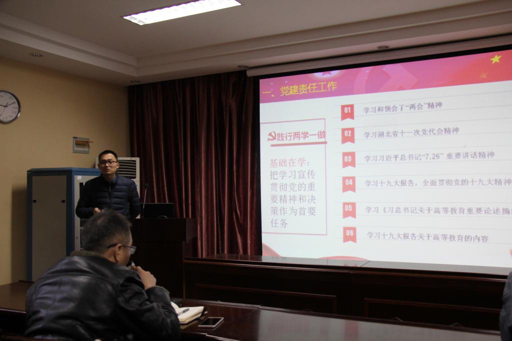 根据学院党委的统一安排, 2018年1月11日上午在基础楼二楼报告厅进行了2017年十大买球官方网站党支部书记抓基层党建述职评议答辩汇报会,学院党委委员和师生党支部书记及支部委员参加会议。会议由党委副书记李杰同志主持。