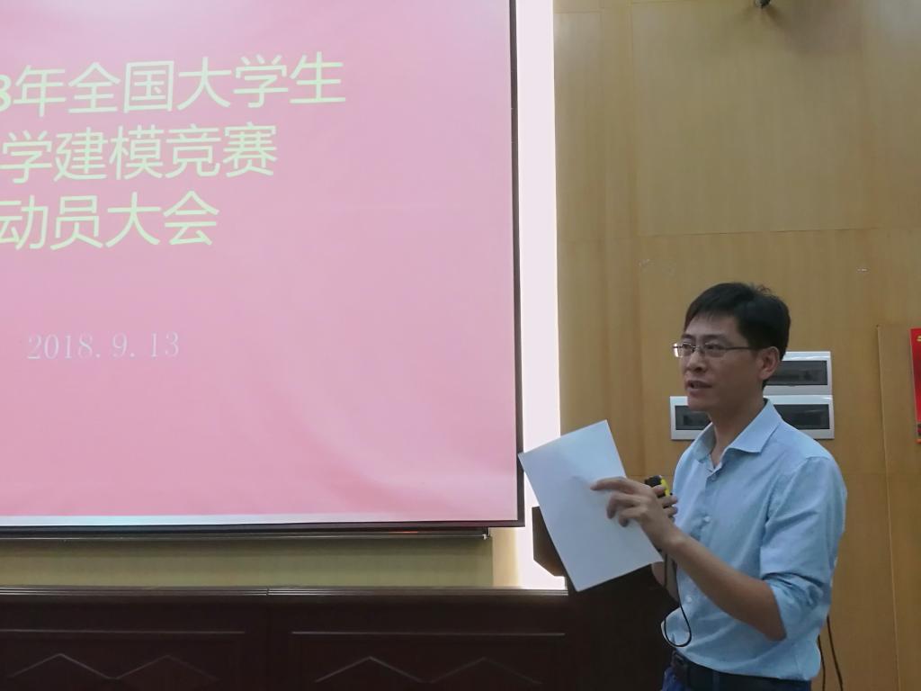 2018年9月13日下午,在教三楼109教室举行了2018年全国大学生数学建模竞赛的动员会。教务处副处长吕占峰以及信工学院、自动化学院、计算机学院等部分参赛学生所在的分管领导应邀出席十大买球官方网站院长刘安平、院党委书记吴太山以及全体指导老师参加会议。仪式由十大买球官方网站副院长张光勇教授主持。
