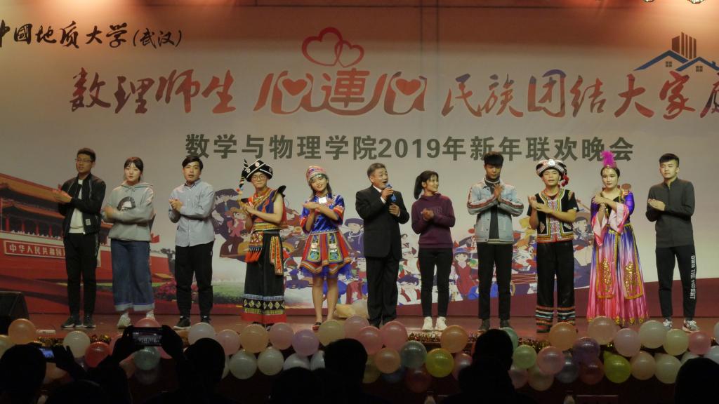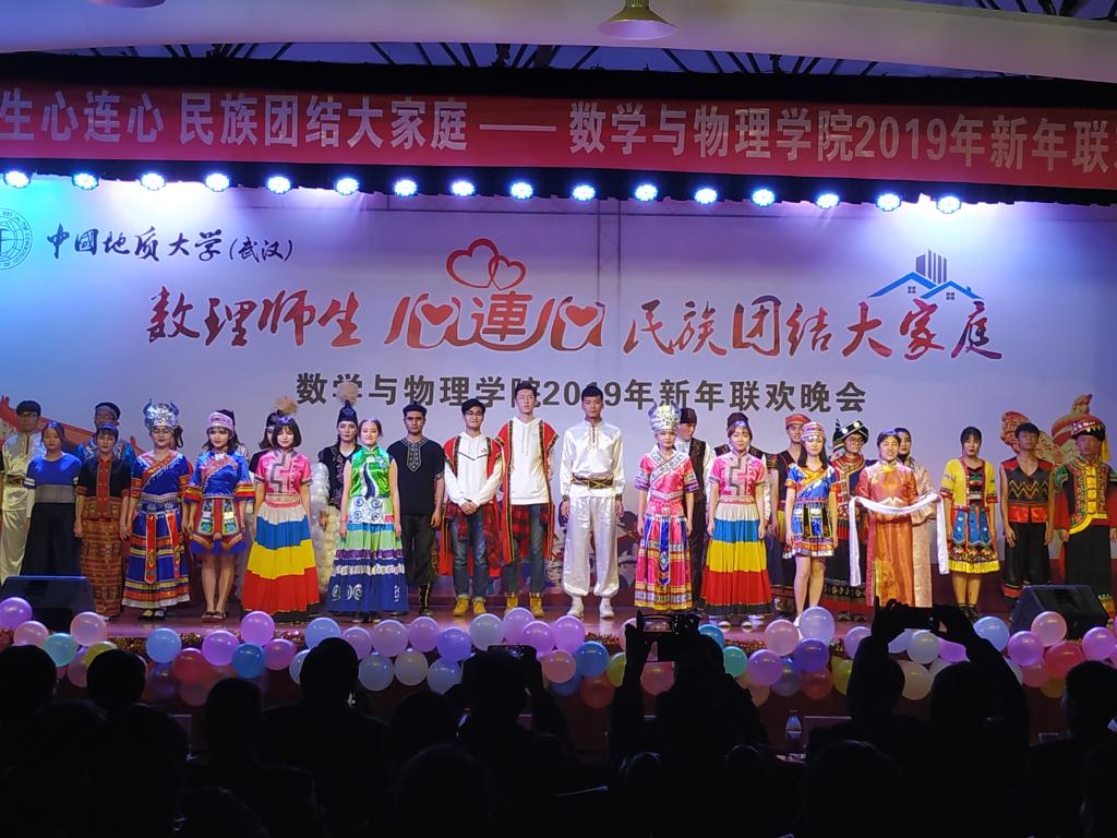 2018年12月20日晚,数理师生心连心 民族团结大家庭——十大买球官方网站2019年新年联欢晚会在大学生活动中心二楼举行。校党委书记何光彩、党委常委组织部部长储祖旺、党委宣传部部长胡守庚、党委统战部部长唐勤、党委保卫部部长代清风、资源学院党委书记李宇凯、学校办公室副主任刘东杰、监察处副处长李杰、学生工作处副处长苏洪涛、学生工作处副处长蒋怀柳、学生就业创业处副处长陈慧、校团委黄蕾、学工处少数民族学生工作办公室各位老师以及十大买球官方网站党政班子成员、各系主任、党支部书记、学工组和院直的各位老师与学院学生共同观看了晚会。