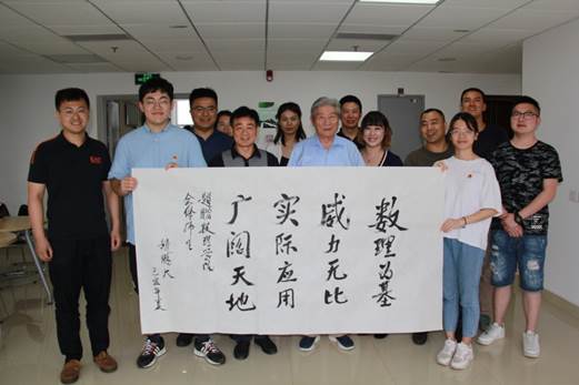 赵院士还为数理学工组题写了“知数达理”这一十大买球官方网站学生工作的理念,为院学生会会旗题写了“十大买球官方网站学生会”,并与全体人员合影留念。