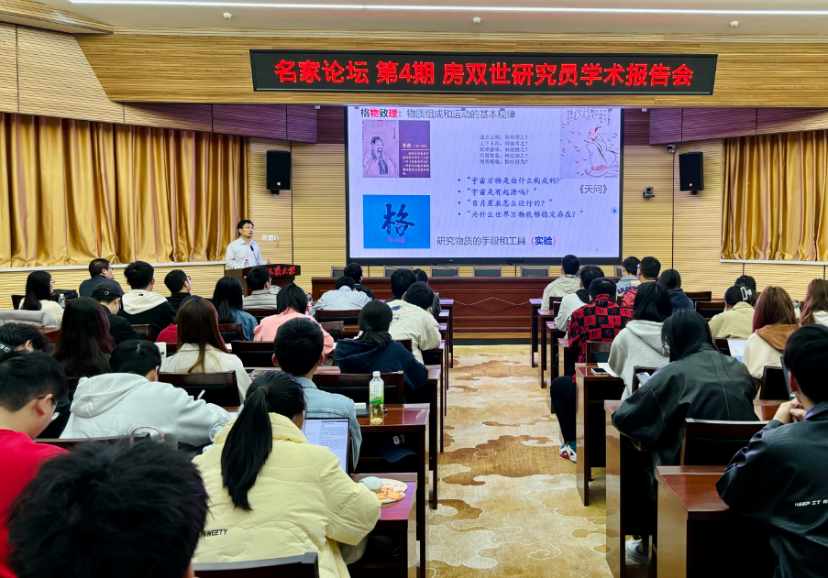 2024年4月7日,中国科学院高能物理研究所房双世研究员做客十大买球官方网站名家论坛,在南望山校区八角楼学术报告厅作了题为“对撞生新态”的学术讲座。报告会由十大买球官方网站副院长张保成教授主持,我校师生90余人参加。