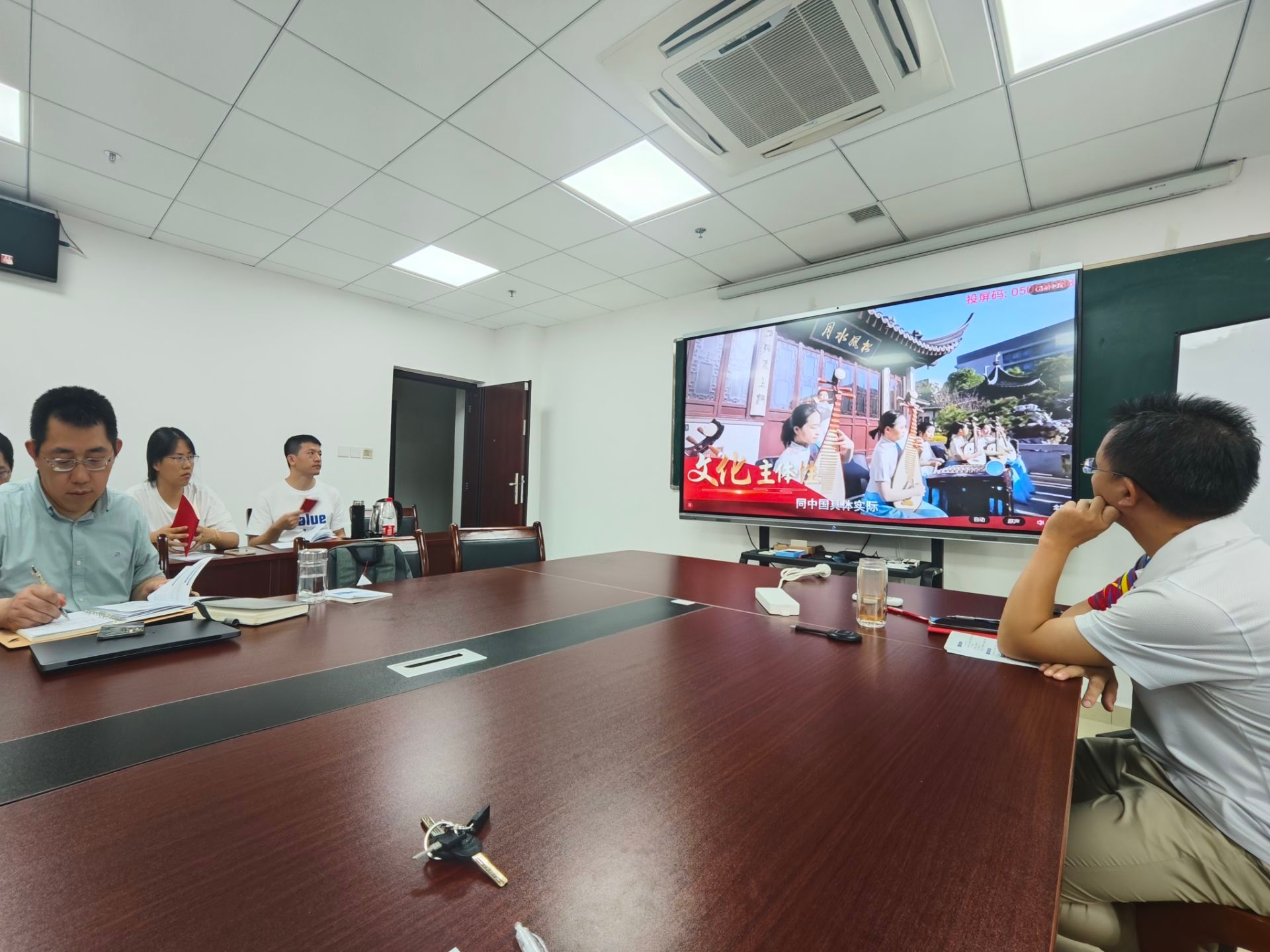 2024年9月19日(周四)16:00,物理系全体教师集中观看了《2024年高校党组织示范微党课第三讲<学深悟透习近平文化思想,加快建设社会主义文化强国>》。《2024年高校党组织示范微党课》展播活动由教育部思想政治工作司主办,教育部宣传教育中心承办。