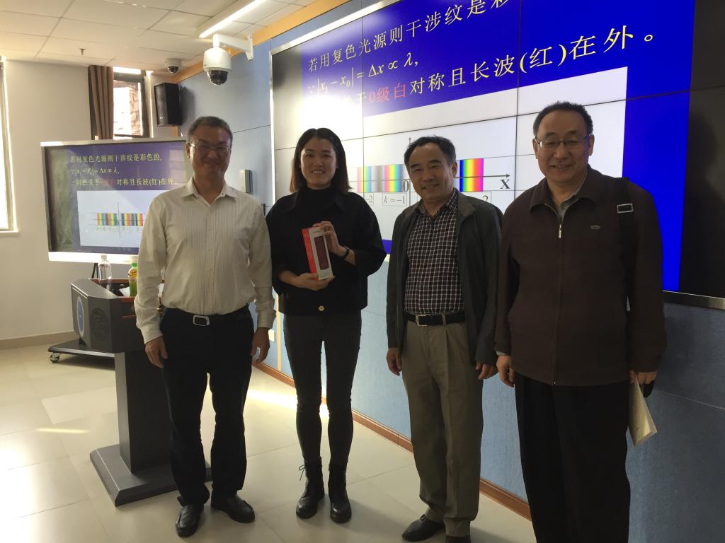 10月24日上午,学院领导吴太山、郭上江、张光勇、程永进等一行7人前往未来城校区,看望当天在新校区上课的李铁平、汤型正、黄刚、丁思静、谢宜龙等老师,给每一位在新校区上课的老师赠送1个保温杯。院领导还实地考察刚刚投入启用的公教2楼的每个大学物理实验室,检查了其中将用作老师们辅导答疑、批改作业、课间休息的117室的设施配置情况,商请物理实验中心为每位老师设置二维码钥匙,扫描二维码即可开门。院领导现场还决定配置10个公用小拖车,方便老师携带作业本。