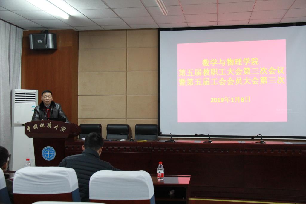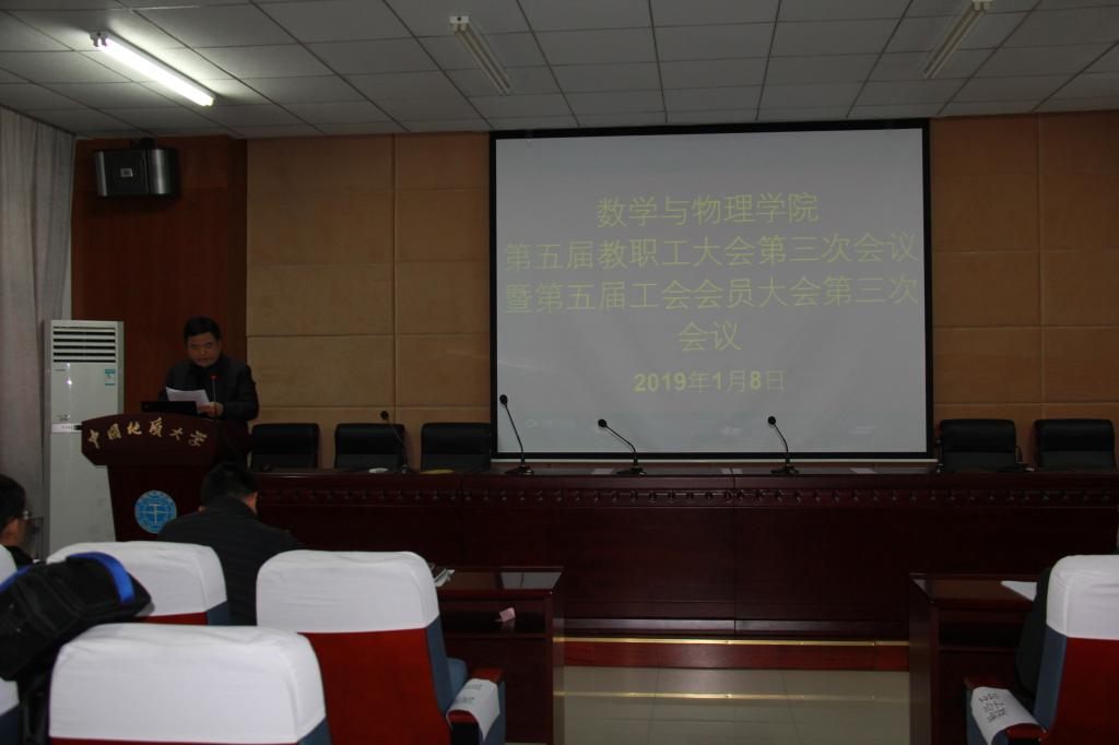 2019年1月8日下午,十大买球官方网站第五届教职工大会第三次会议暨工会会员大会第三次会议在学海楼109会议室隆重召开。校党委副书记王林清、校工会常务副主席喻芒清应邀出席大会,学院党政领导及全体教职工参加会议。大会分两阶段进行。