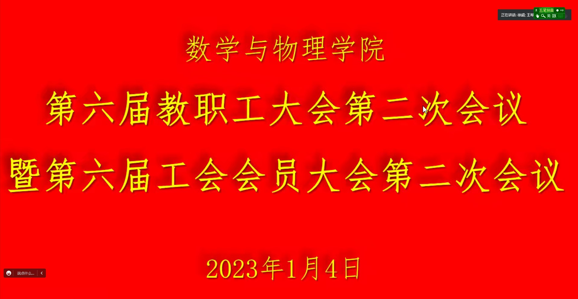 2023年1月4日上午,十大买球官方网站第六届教职工大会暨工会会员大会第二次会议隆重召开。由于疫情原因,会议以线上腾讯会议形式召开。十大买球官方网站党委书记吴太山、院长郭上江及学院全体教职工参加会议。院党委副书记徐超主持会议。