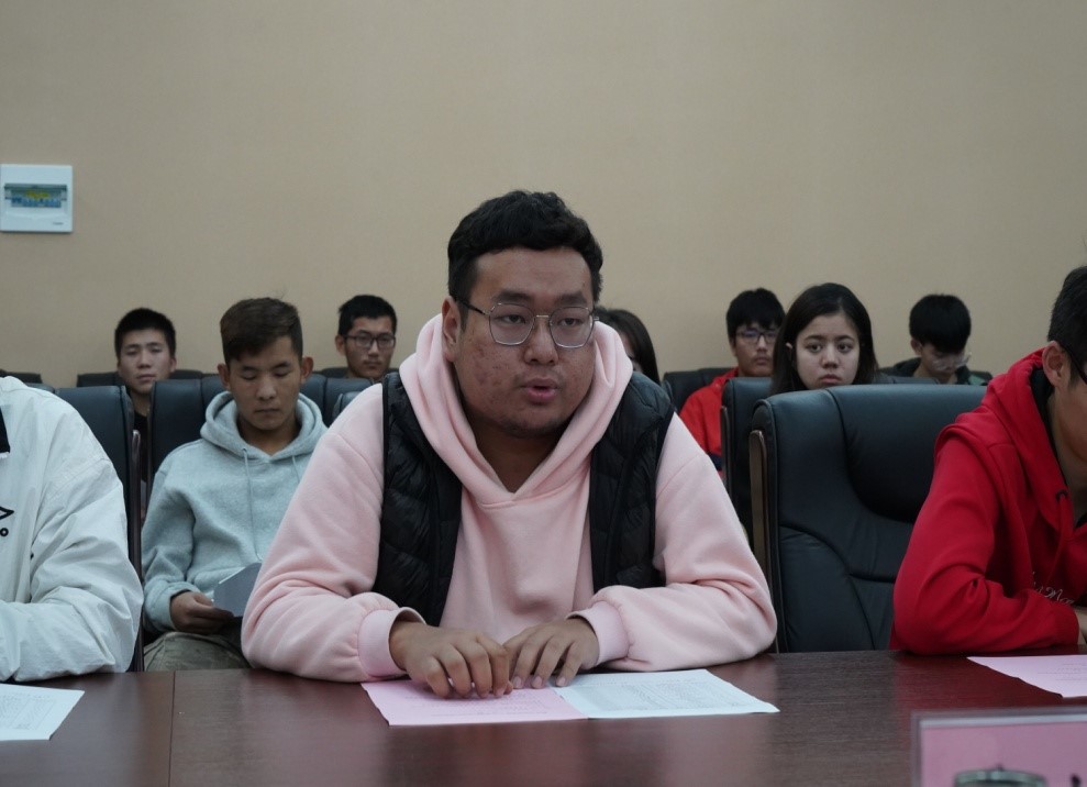 在自由交流环节,同学们就学习、生活等实际问题进行了踊跃发言。赵恩华同学提出每个省份的同学应当认真考虑自己为家乡建设所需要的专业知识,然后汇总,明年预科结业专业分流时建议学校从这些汇总中分配学校的专业比例。
