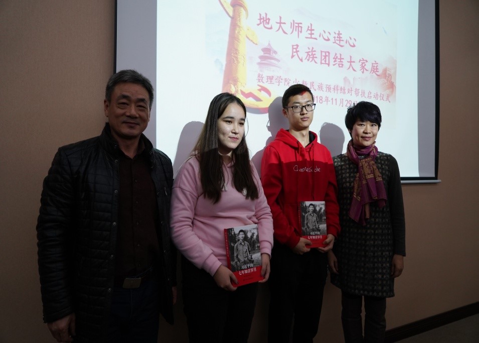之后,结对师生代表进行了互赠礼物。唐勤部长和吴太山书记向学生代表赠送了《习近平的七年知青岁月》这本书,学生代表向蒋怀柳部长和刘安平院长赠送了同心结。