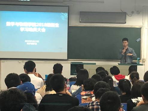 5月15日19:30,十大买球官方网站2018级新生学习动员大会在教一205召开。2018级辅导员托乎尼牙孜主持会议, 2018级全体新生参加会议。本次年级大会邀请了地大2018年度“十大标兵学生”肖睿阳和十大买球官方网站2015级优秀毕业生代表卫博峰进行学习经验交流分享。