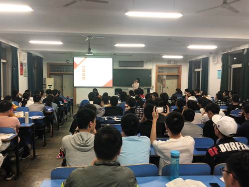 接着发言的是肖睿阳同学,现被保送到中国科学技术大学网络空间安全专业。肖睿阳讲述了自己大学四年以来的学习、竞赛、科研经历,告诫同学们要珍惜大学的时间,朝自己的兴趣奋进,努力终会结出累累硕果。