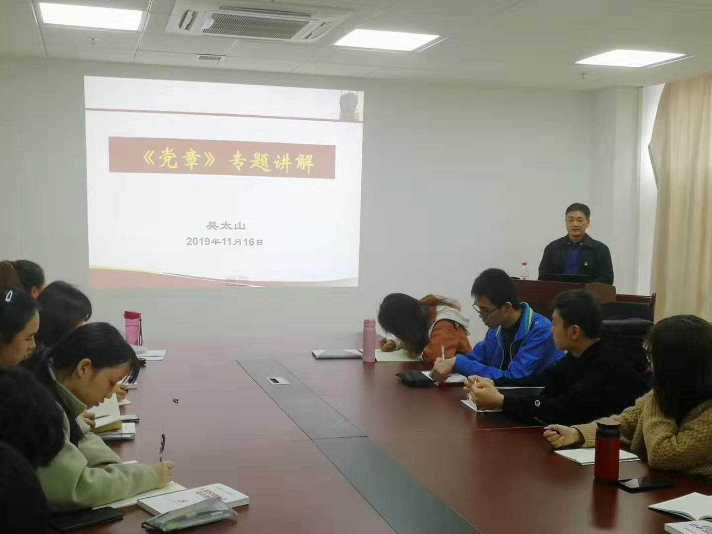 11月16日下午,十大买球官方网站第66期入党积极分子培训班第二讲在东区教学综合楼A1505会议室举行。本次党课由学院党委书记吴太山讲授《党章》专题。院学生党建办主任孙宇涛主持。