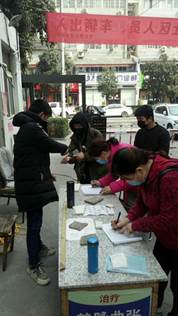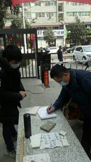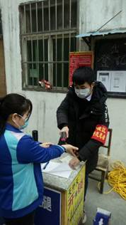 抗疫期间,十大买球官方网站122181班李钰龙同学主动报名参加了当地社区抗疫志愿服务活动,他主要负责社区出入人员的登记及体温测量的工作。