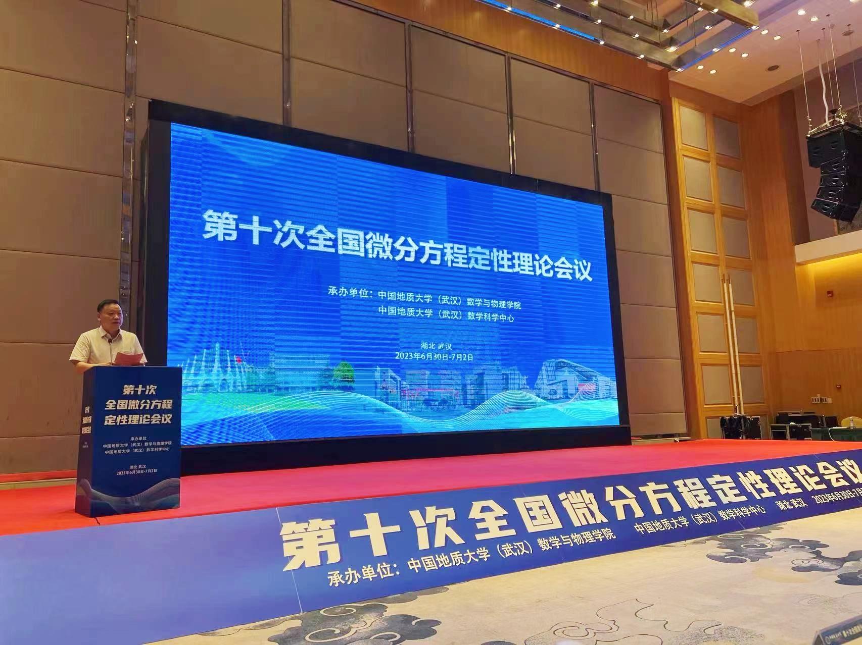 在学校深入开展学习贯彻习近平新时代中国特色社会主义思想主题教育、喜迎第十三次党代会胜利召开之际,为进一步加强我校和国内数学领域专家学者的交流,推动数学学科建设,由我校数学与物理学院和数学科学中心承办的“第十次全国微分方程定性理论会议”于6月30日至7月2日在武汉荷田大酒店会议中心召开。本次会议共有美国阿拉巴马大学、清华大学、中国科学技术大学、复旦大学、上海交通大学、武汉大学、华中科技大学、中山大学、四川大学、国防科技大学等200余所高校近600余位专家学者参加。